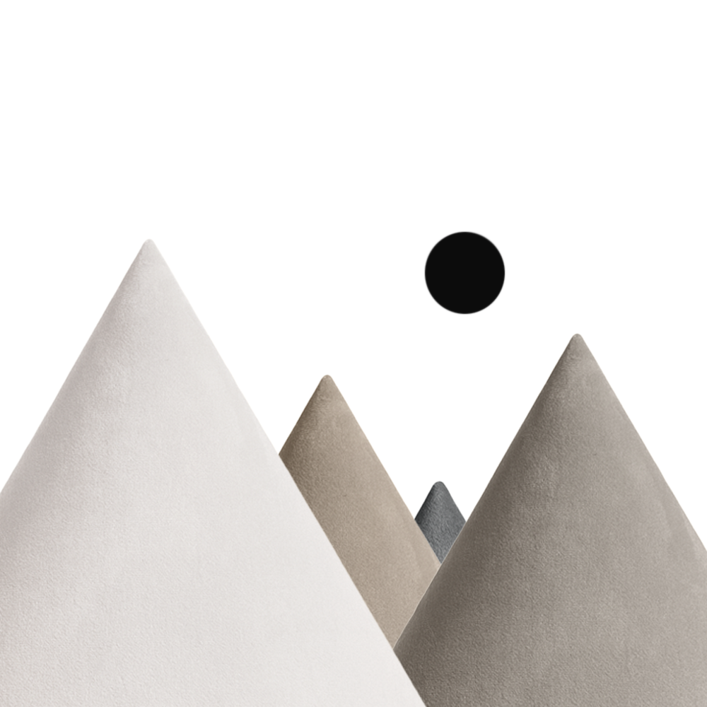 Čalúnený panel v tavre trojuholníka JIB v rozmere 30x30 cm. Panel je možné použiť ako alternatívu čela postele, ako ochranu pred chladom zo steny, dekoráciu alebo na zlepšenie akustiky miestnosti.