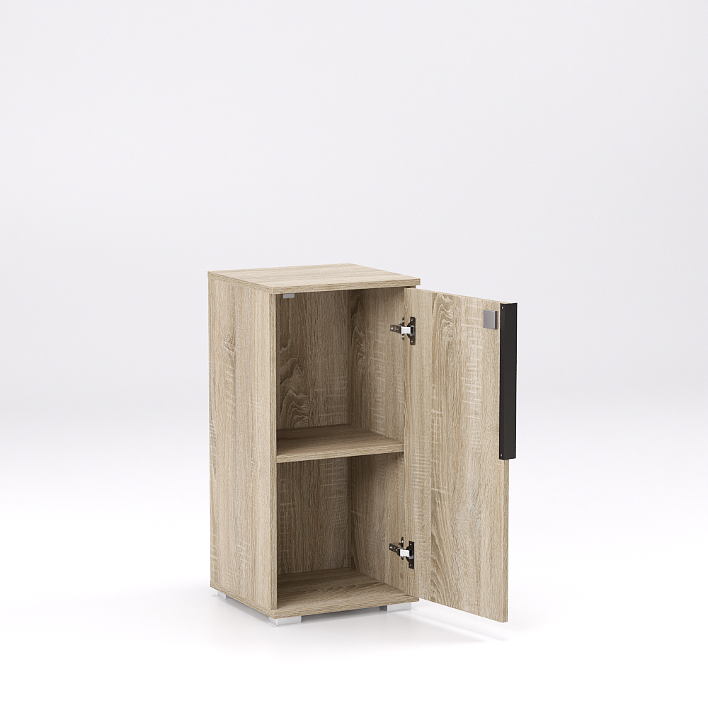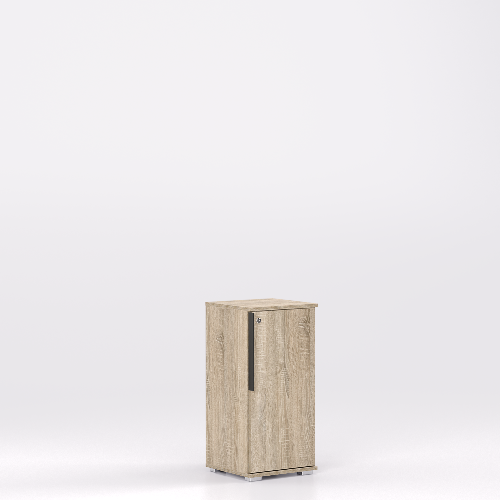 Úzka, nízka skrinka REA OFFICE 20 TYP2 so zámkom z laminovanej drevotriesky. Bezpečné uzamknutie, elegantný vzhľad a možnosť výberu dvierok v dezénoch REA STANDARD.