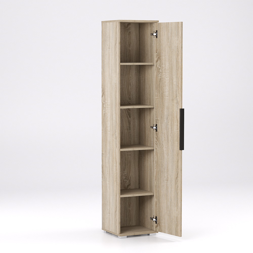 Úzky vysoký regál REA OFFICE 50 TYP1 predstavuje ideálne riešenie do menších priestorov, kde je potrebné šetriť miesto, no zároveň ponúka dostatok úložného priestoru. Vysoké dvere bez zámku chránia obsah skrinky, zatiaľ čo štyri vnútorné police ponúkajú priestor na knihy, dokumenty alebo dekorácie.