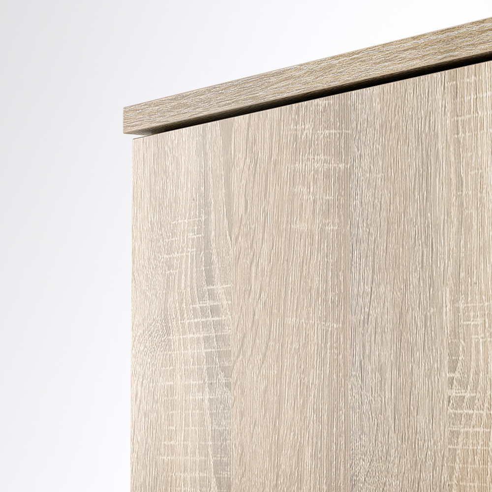 Vyrobený z laminovanej DTD s hrúbkou 16 mm, regál zaručuje pevnosť a dlhodobú odolnosť. Strieborné nožičky vysoké 2 cm nielen zvyšujú stabilitu, ale aj dopĺňajú moderný dizajn. Regál je dostupný vo všetkých dezénoch REA™ STANDARD, s možnosťou dokúpenia dvierok v rôznych farebných prevedeniach.