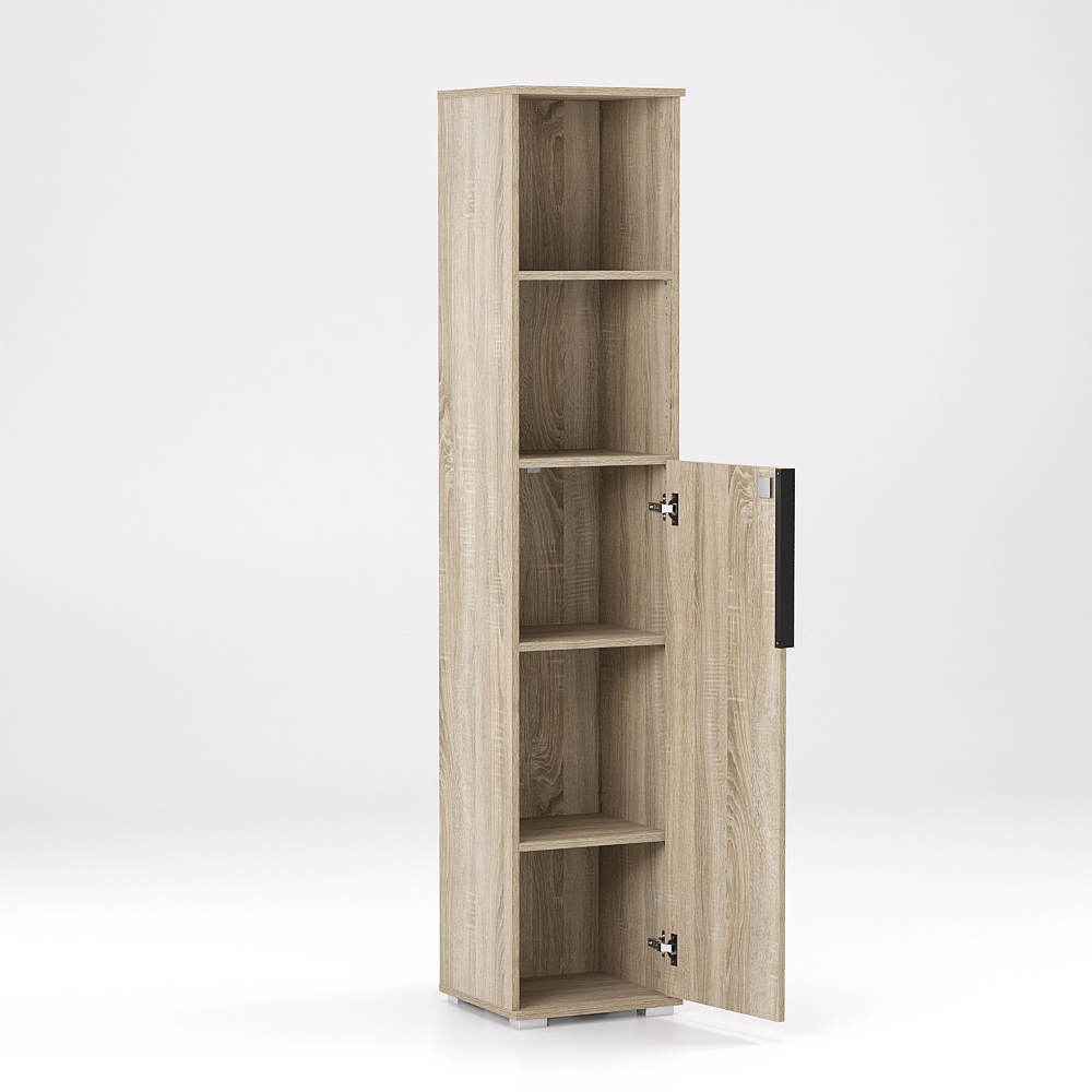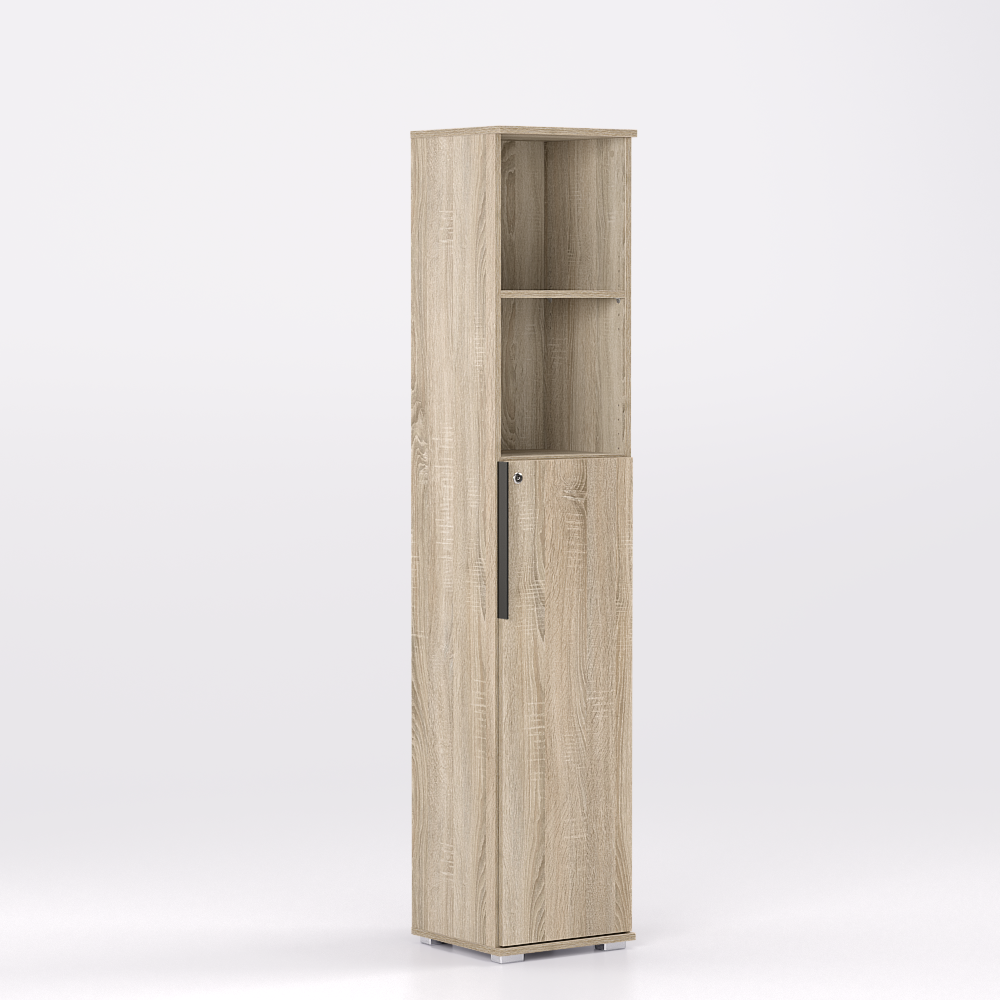 REA OFFICE 50 TYP5 – Úzka vysoká skrinka so strednými dverami so zámkom. Praktický a bezpečný nábytok s možnosťou dokúpenia dvierok v rôznych dezénoch.