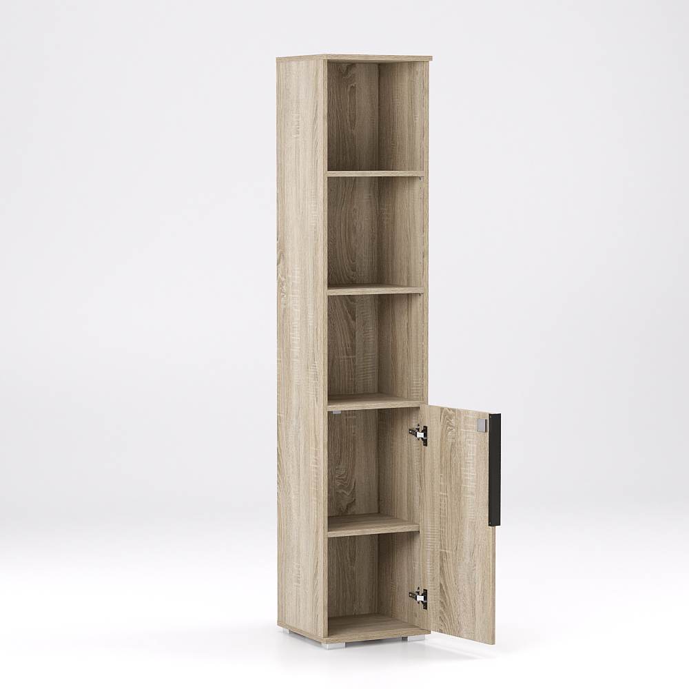 REA OFFICE 50 TYP6 – Úzka vysoká skrinka s malými dverami so zámkom. Praktický a bezpečný nábytok s možnosťou dokúpenia dvierok v rôznych dezénoch.