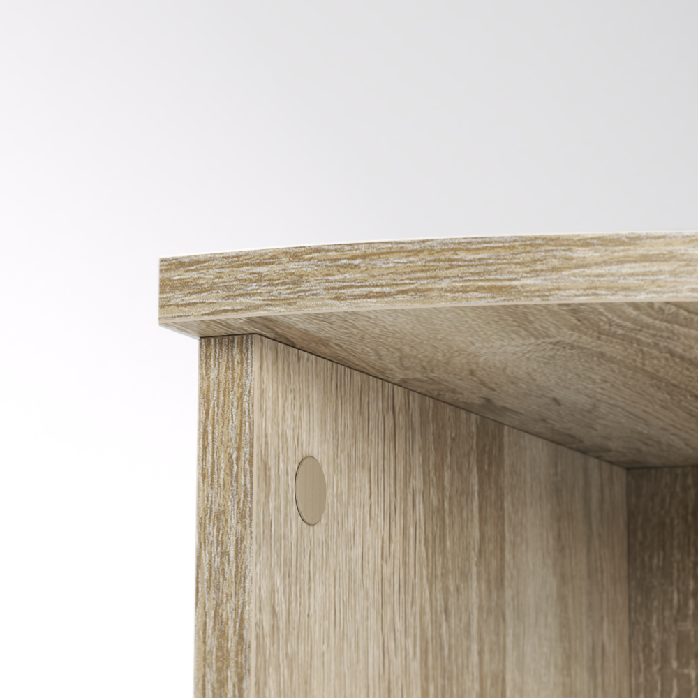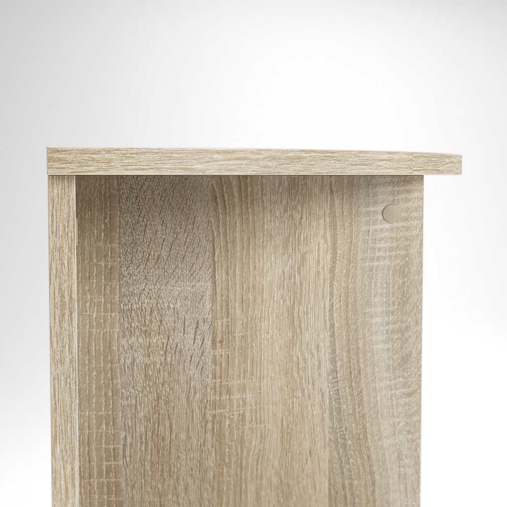 Regál je vyrobený z kvalitnej laminovanej DTD s hrúbkou 16 mm a opatrený ABS hranami (0,5 a 1 mm), čo zaručuje dlhú životnosť a odolnosť. Vďaka jednej poličke, ktorá rozdeľuje vnútorný priestor na dve rovnaké časti, získavate prehľadné a praktické riešenie pre uloženie dokumentov, kníh alebo dekorácií.