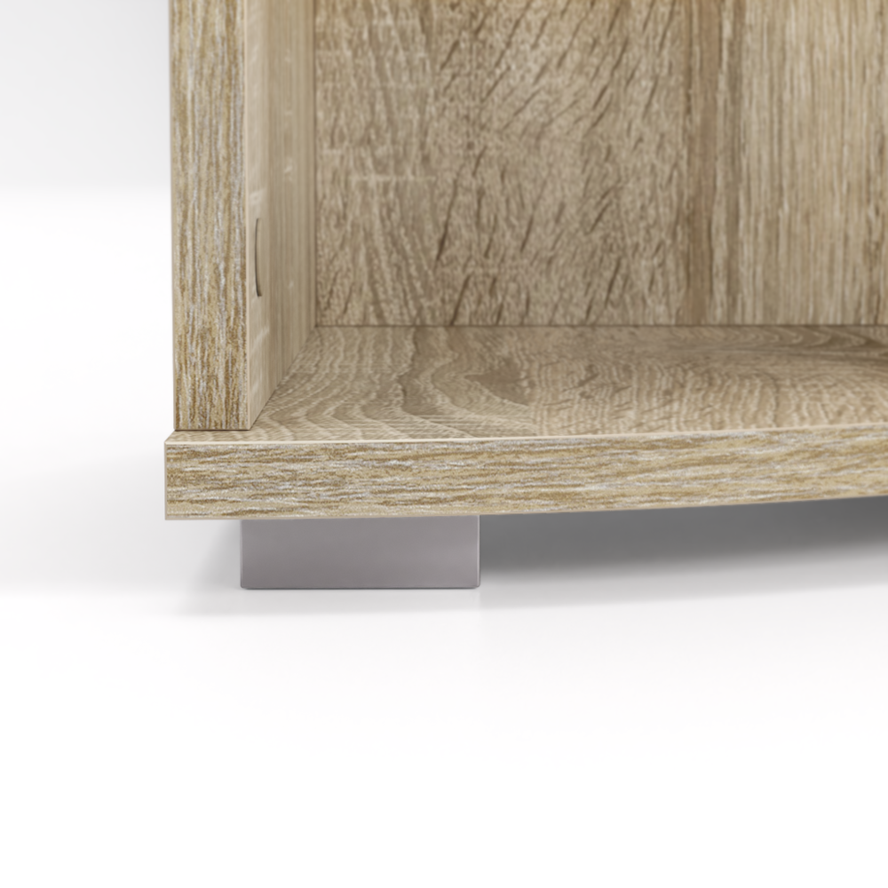 Moderný vzhľad dopĺňajú strieborné nožičky s výškou 2 cm, ktoré dodávajú regálu ľahkosť a eleganciu. K dispozícii je vo všetkých štandardných dekoroch REA™ STANDARD, vďaka čomu ho jednoducho zladíte s ostatným nábytkom.
