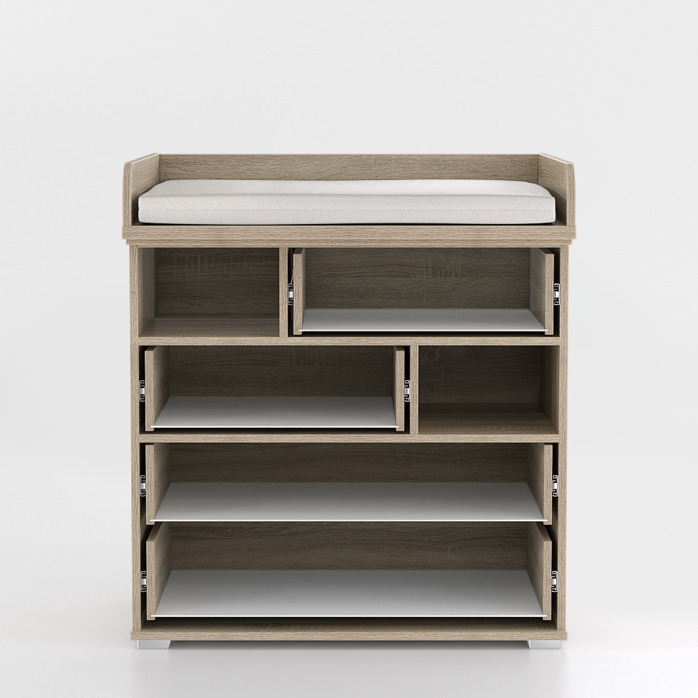 Prebaľovací pult pre ľavákov s praktickým otvoreným priestorom po ľavej ruke. Tie najdôležitejšie veci máte vždy po ruke. Prebaľovací pult je odnímateľný.