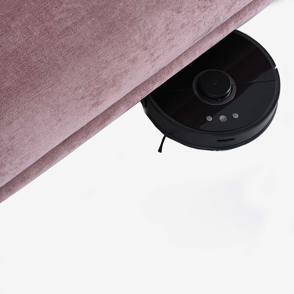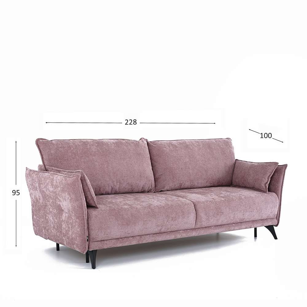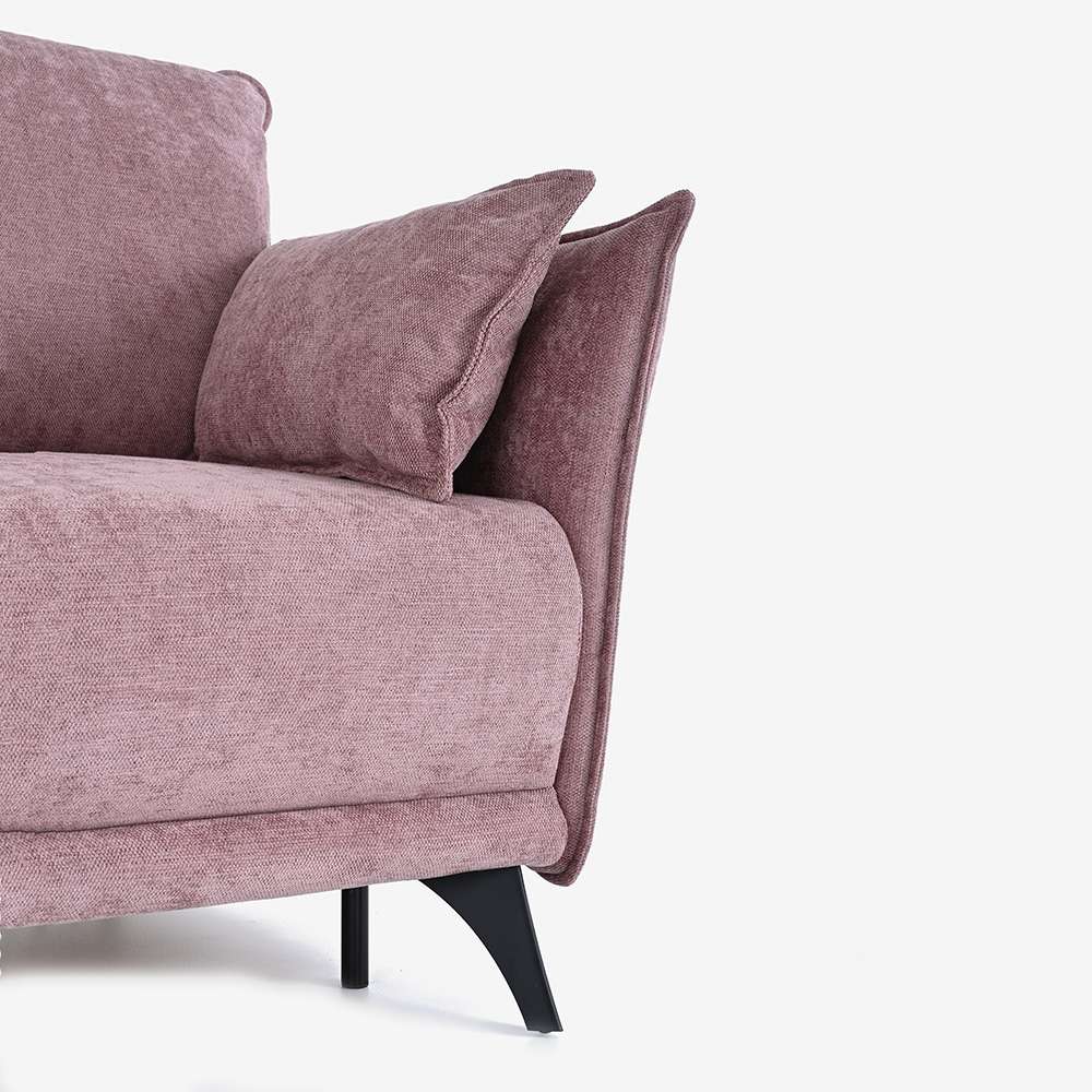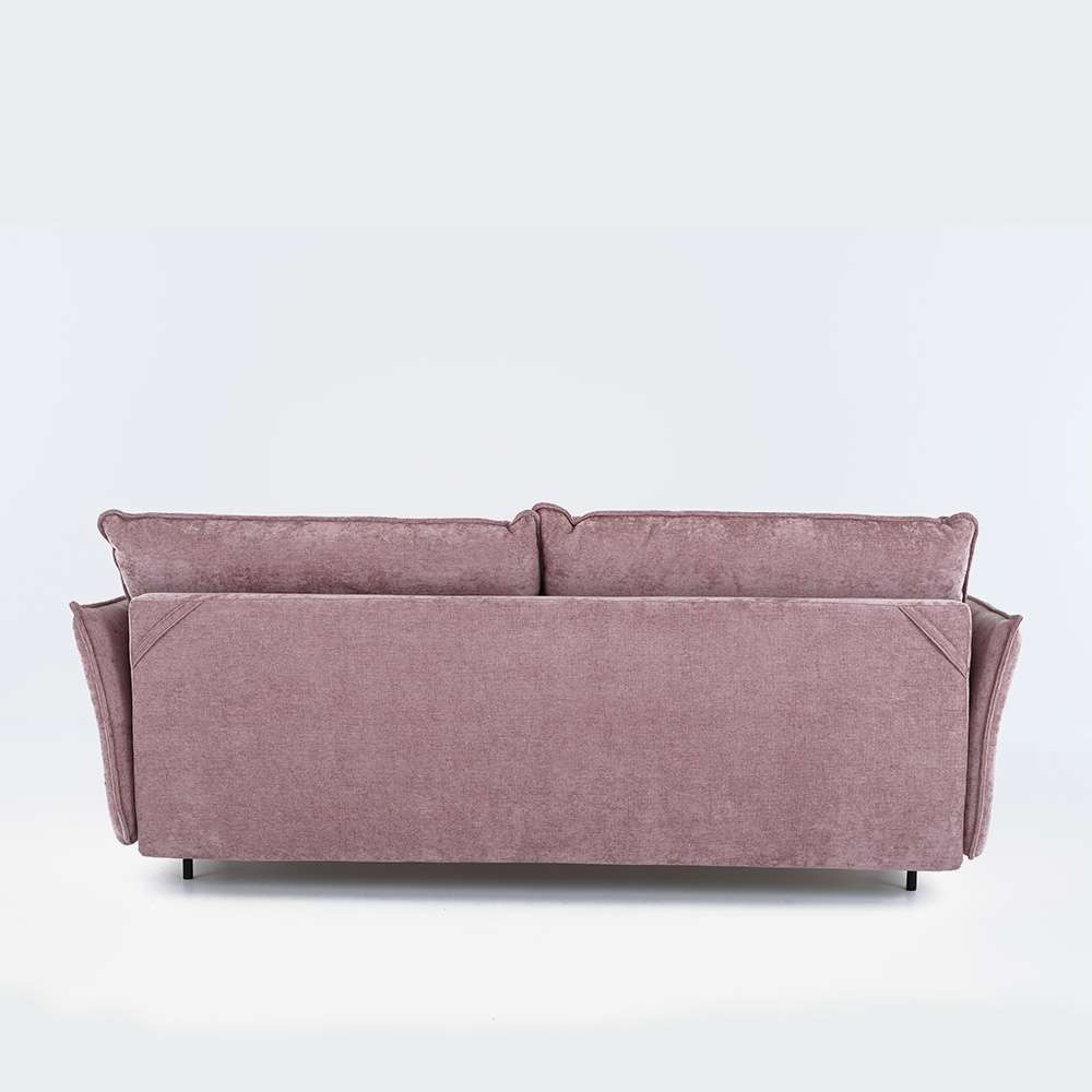 SARENZA 3 v ružovej látke Rosario 463 je štýlový trojsed s rozkladom a úložným priestorom. Moderný dizajn, komfort a miesto aj pre robotický vysávač.