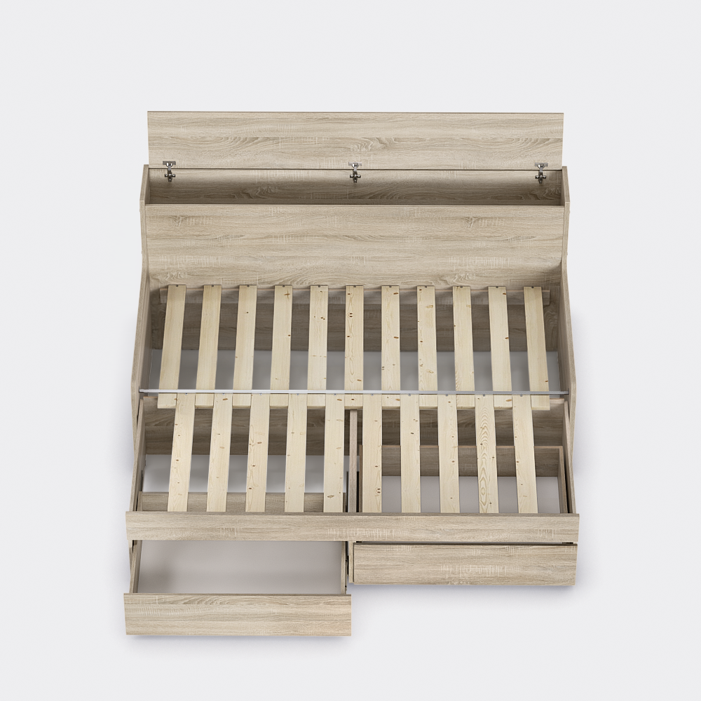 Dve priestranné zásuvky v spodnej časti postele poskytujú ďalší úložný priestor na oblečenie, posteľnú bielizeň či sezónne veci.