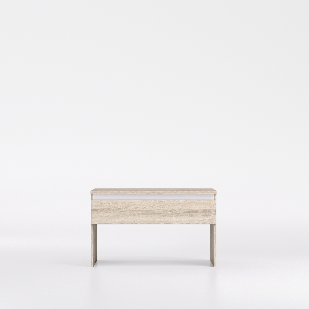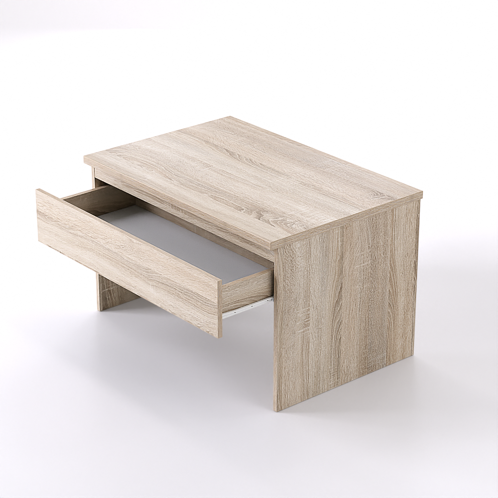 s vrchnou doskou s rozmermi 90x60 cm. Kým z jednej strany stolíka sa nachádza zásuvka, z druhej strany je tento priestor otvorený ako polička.