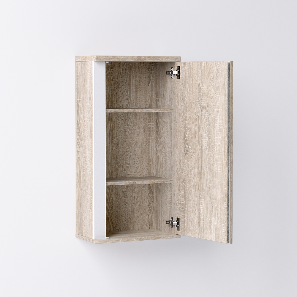 Skrinka je závesná, čo šetrí miesto na podlahe a dodáva miestnosti ľahký, vzdušný vzhľad. Môže sa jednoducho zavesiť na stenu, čo umožňuje flexibilitu pri usporiadaní interiéru. Je navrhnutá s minimalistickým dizajnom, ktorý sa ľahko prispôsobí rôznym interiérom, a to v rôznych farebných variantoch, ako sú biela, šedá či dekory dreva.