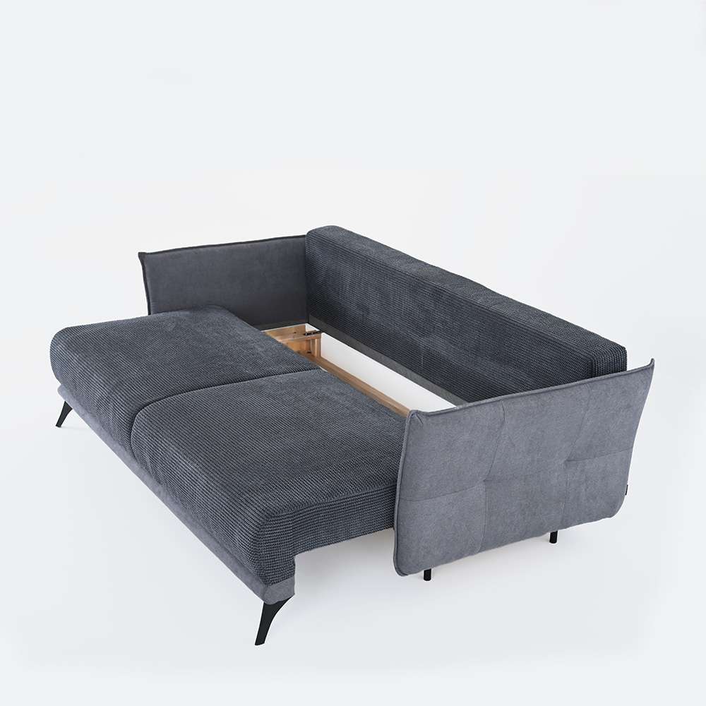 SARENZA 3 je trojsed s rozkladom a úložným priestorom v tmavosivej látke Elma & Asti. Moderný dizajn, pohodlie a miesto aj pre robotický vysávač.